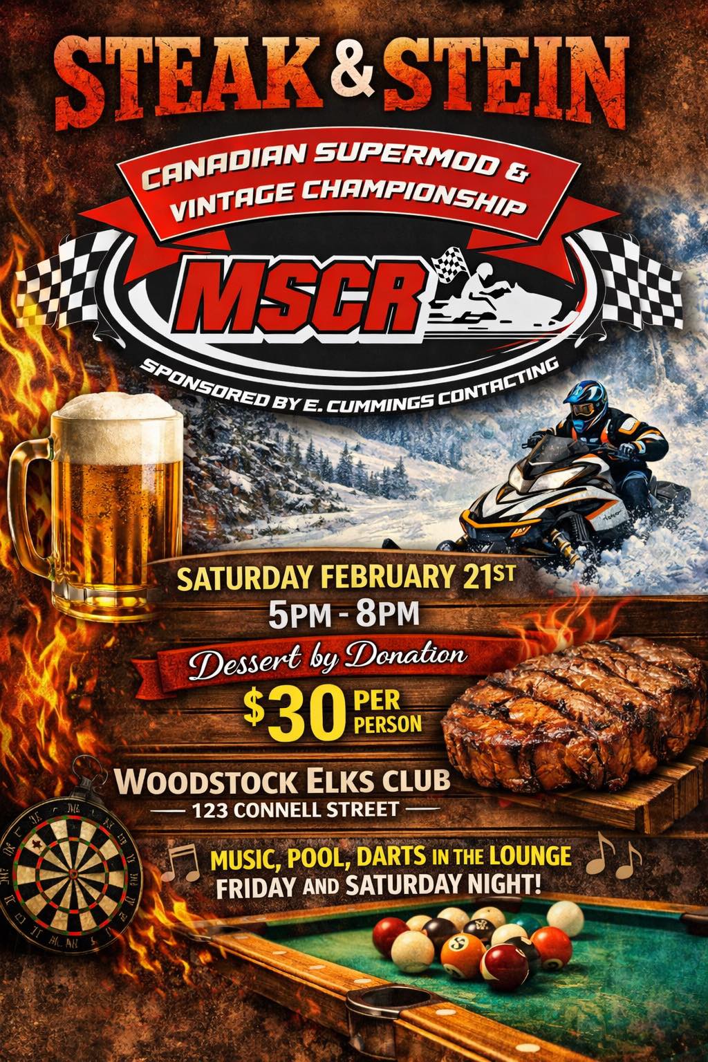 « All Events MSCR Steak & Stein February 21 @ 5:00 pm - 8:00 pm Event Navigation « Charity Hockey Game + Google Calendar+ iCal Export Details Date: February 21 Time: 5:00 pm - 8:00 pm