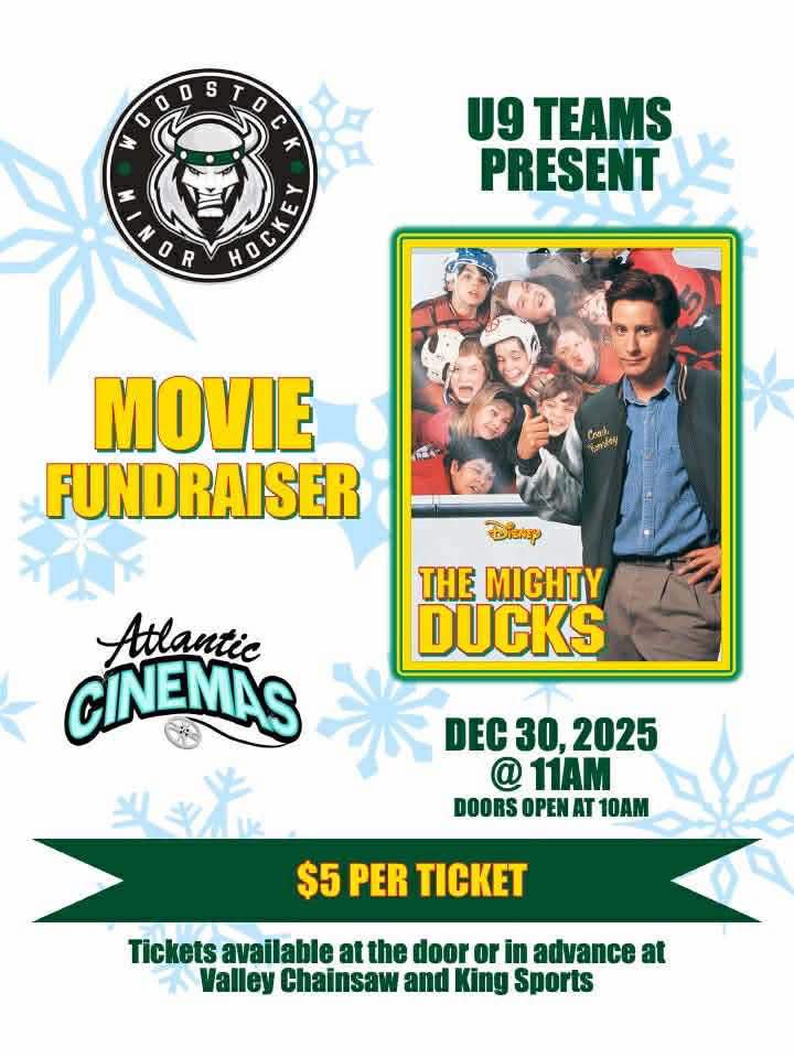 The Woodstock Minor Hockey U9 teams are excited to present a fun movie fundraiser over the Christmas holiday! We’ll be showing